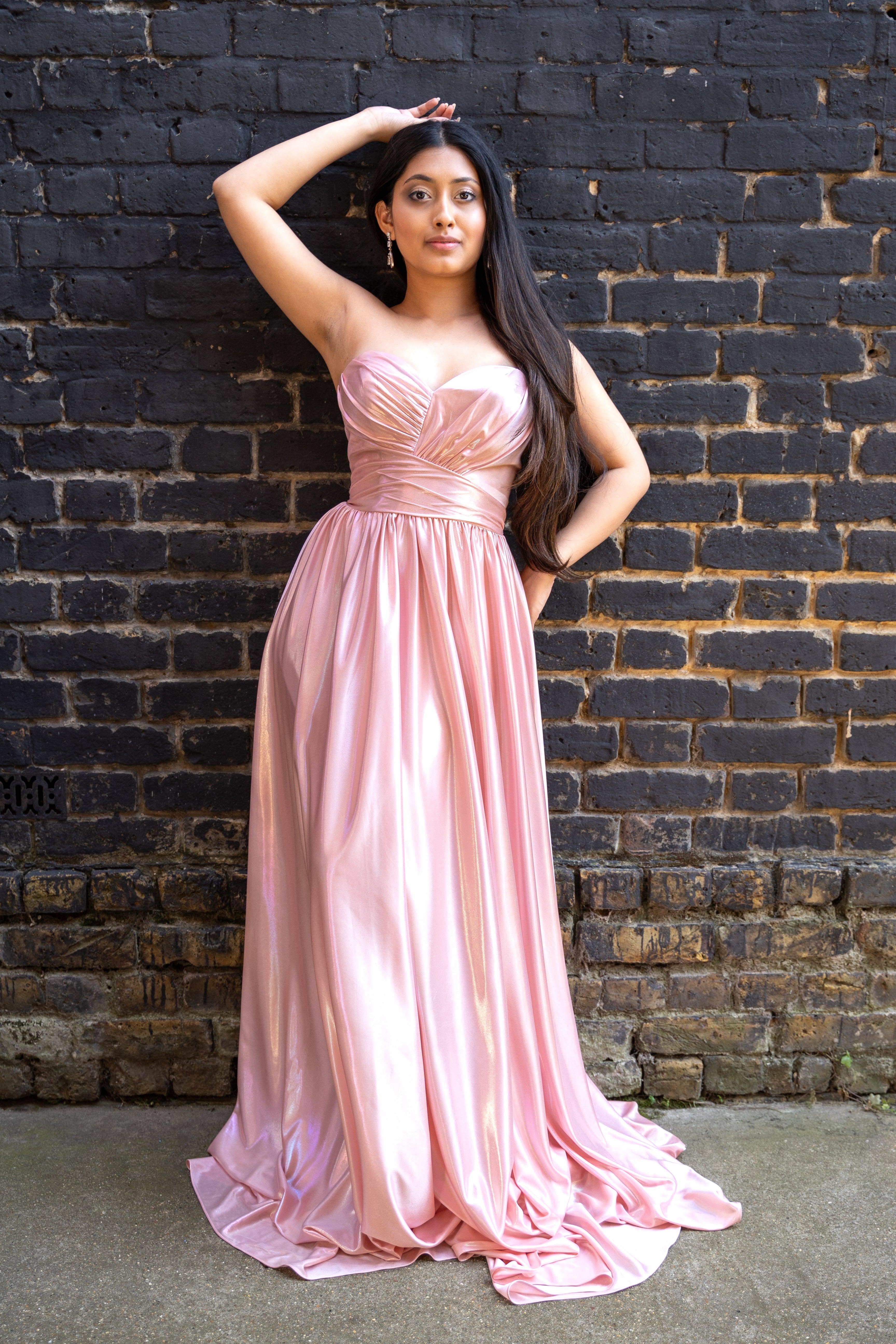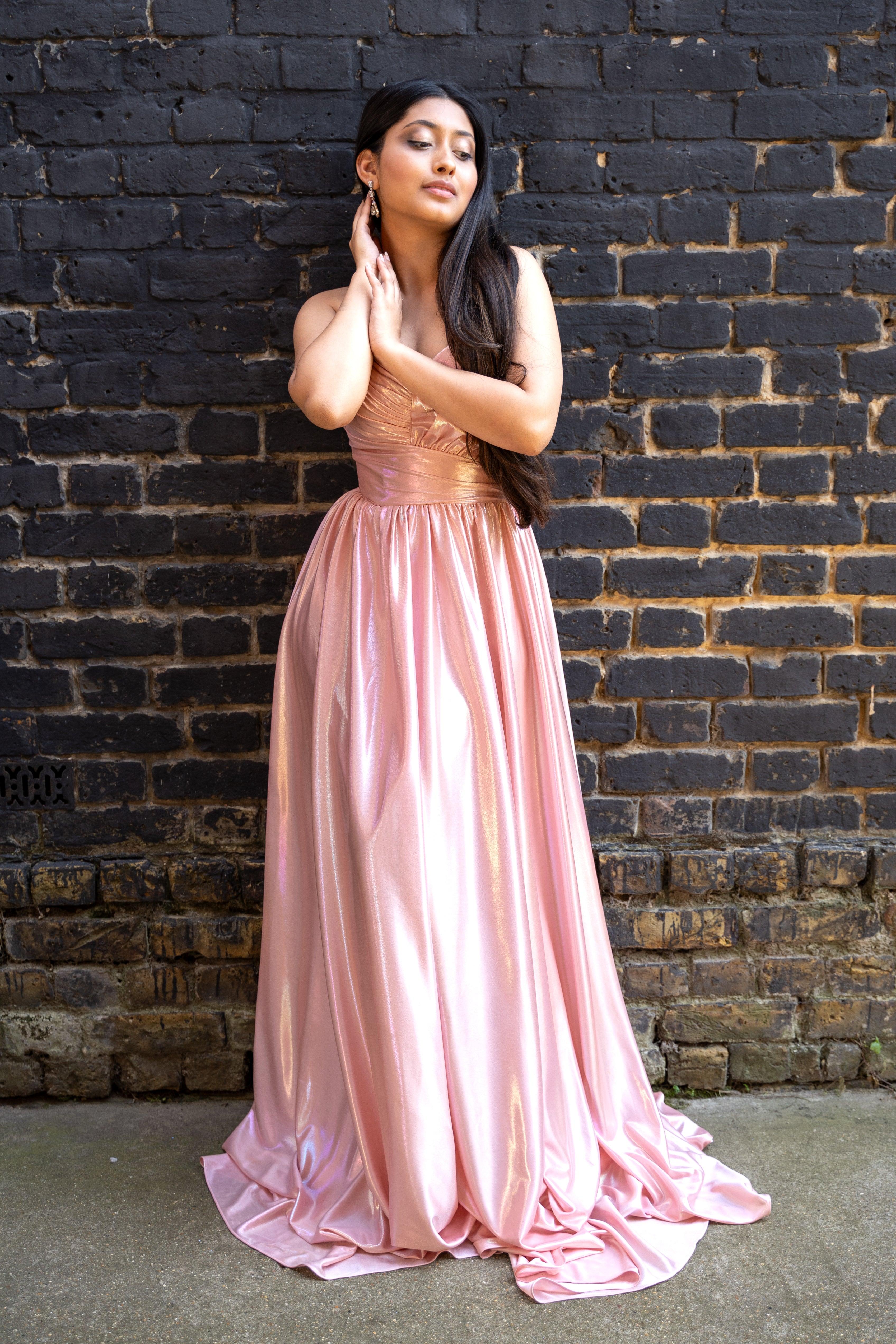 This dress is designed to provide a flattering silhouette, offering both comfort and style. The shiny stretch satin fabric adds a touch of glamour, making it ideal for any formal occasion