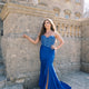 Step into glamour with Selene Couture Style 1317 — a royal blue shiny stretch satin prom dress featuring a strapless embellished corset bodice, flattering ruched waist, and thigh-high slit. A bold and elegant gown perfect for prom, pageants, and evening occasions.